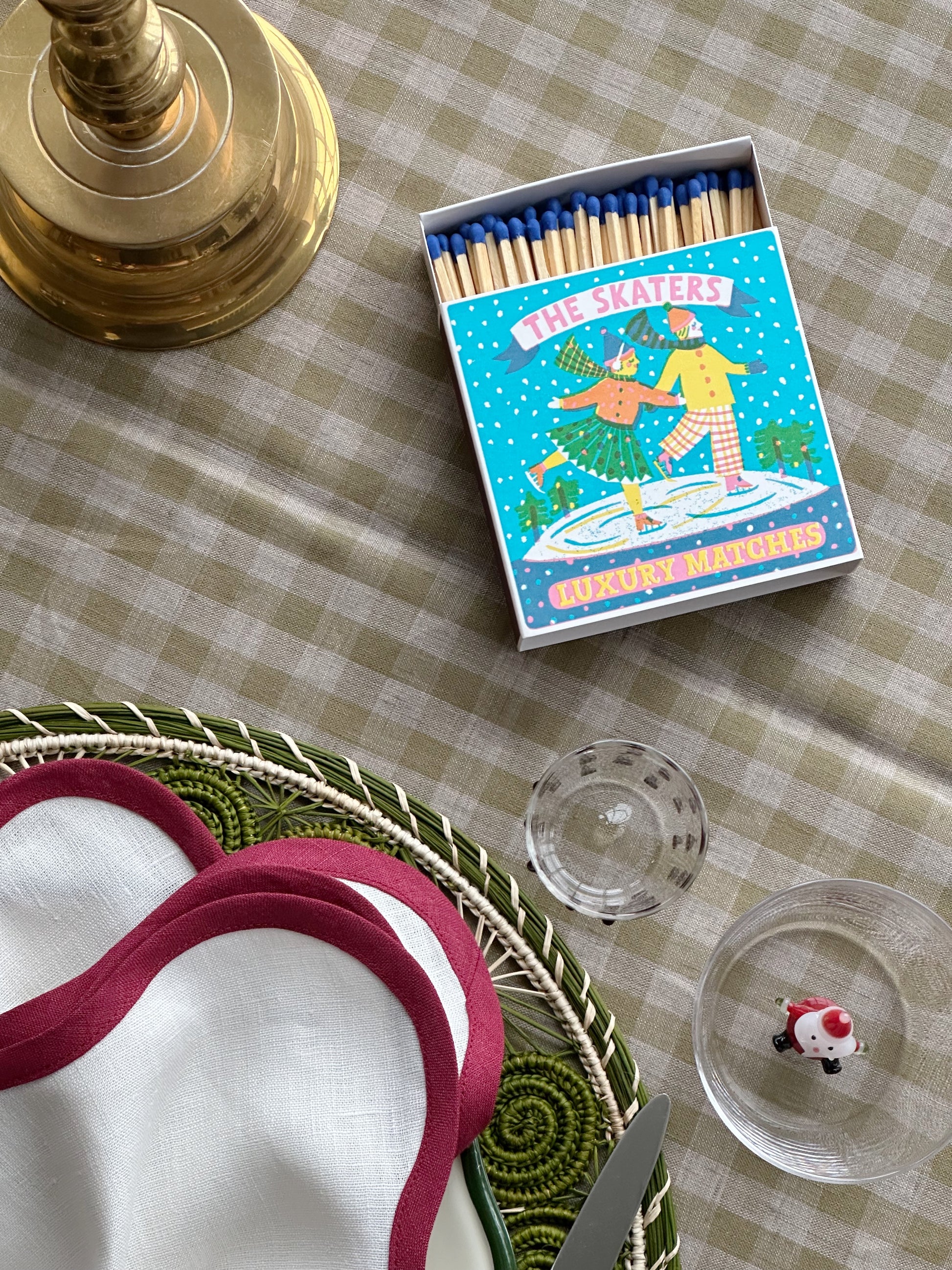 Linduk med de klassiske ginghamrutene med kant i overlock søm. Klassisk duk som passer i mange ulike interiører. Finnes i flere farger og størrelser.